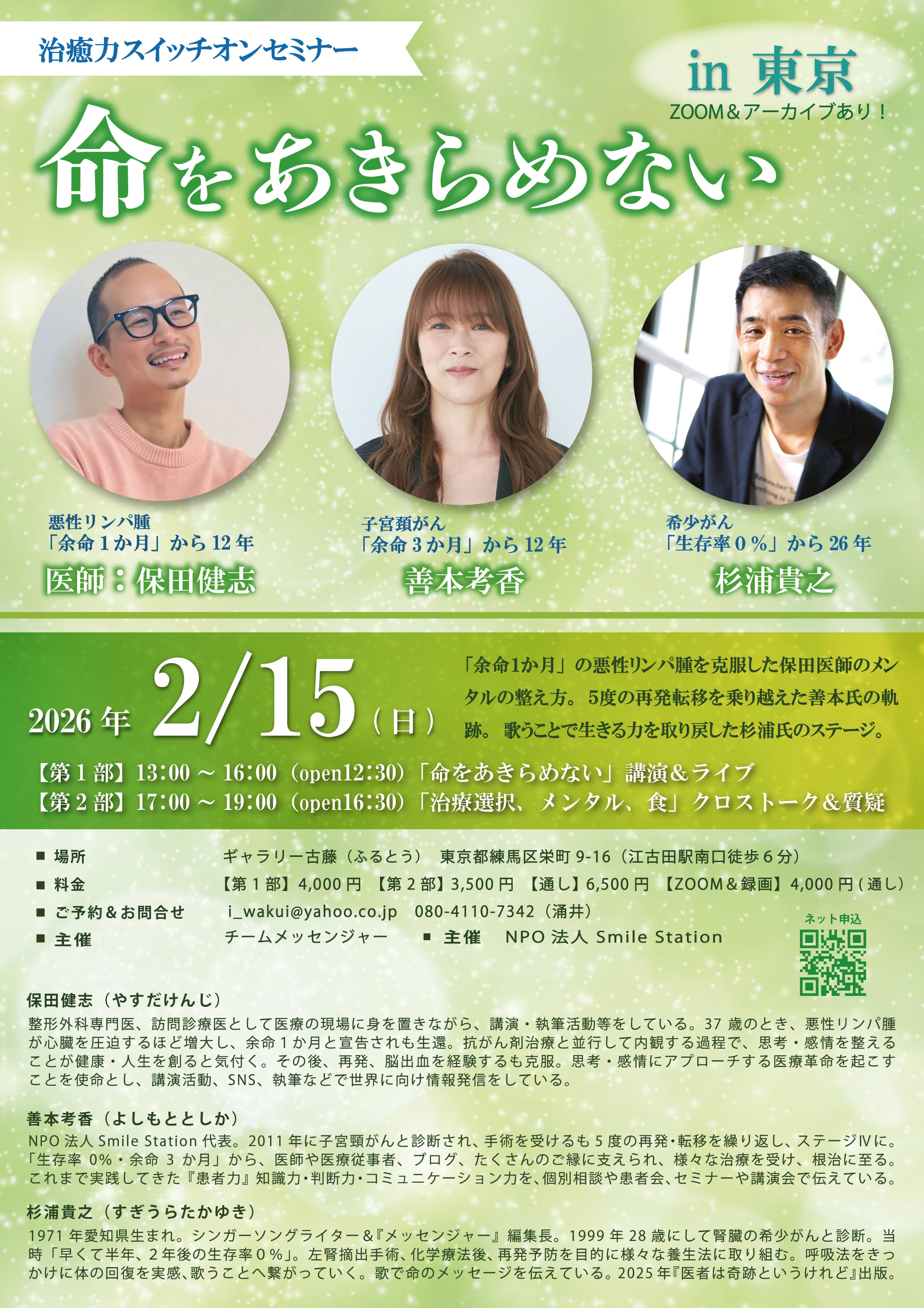 2月15日(日)善本考香&保田健志医師&杉浦貴之 in 東京