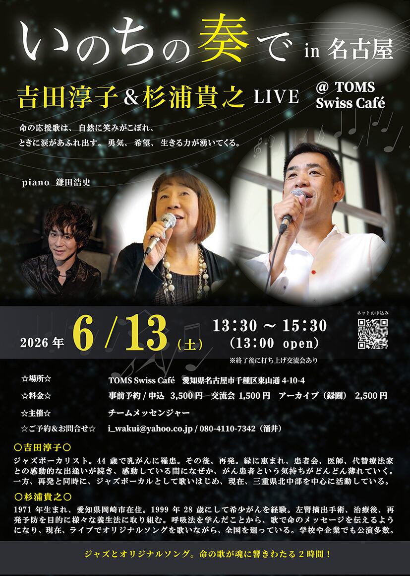 6月13日(土)吉田淳子&杉浦貴之 Special Live in 名古屋 @TOMS Swiss Café